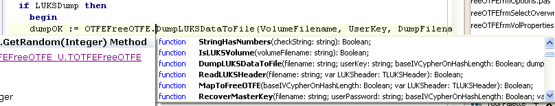 Finally after re-Install the SDeanSecurity package (re-including all the project file), we Save All andClose All the package demo program. Then re-open the real FreeOTFE GUI program.